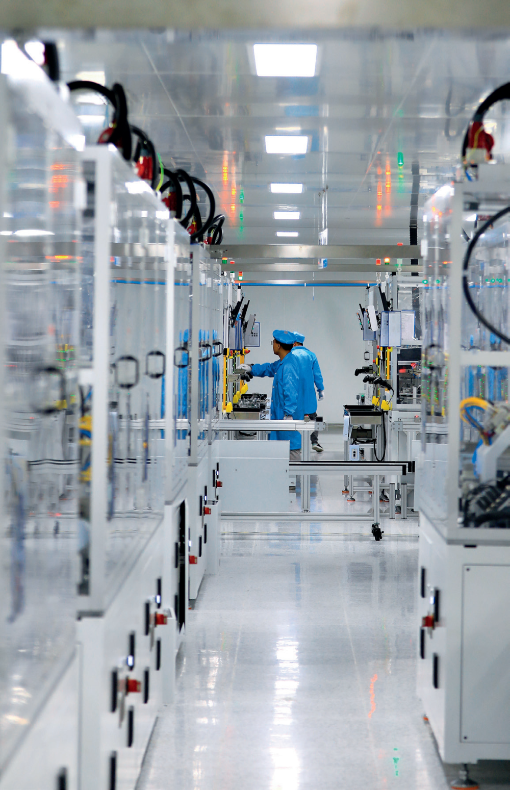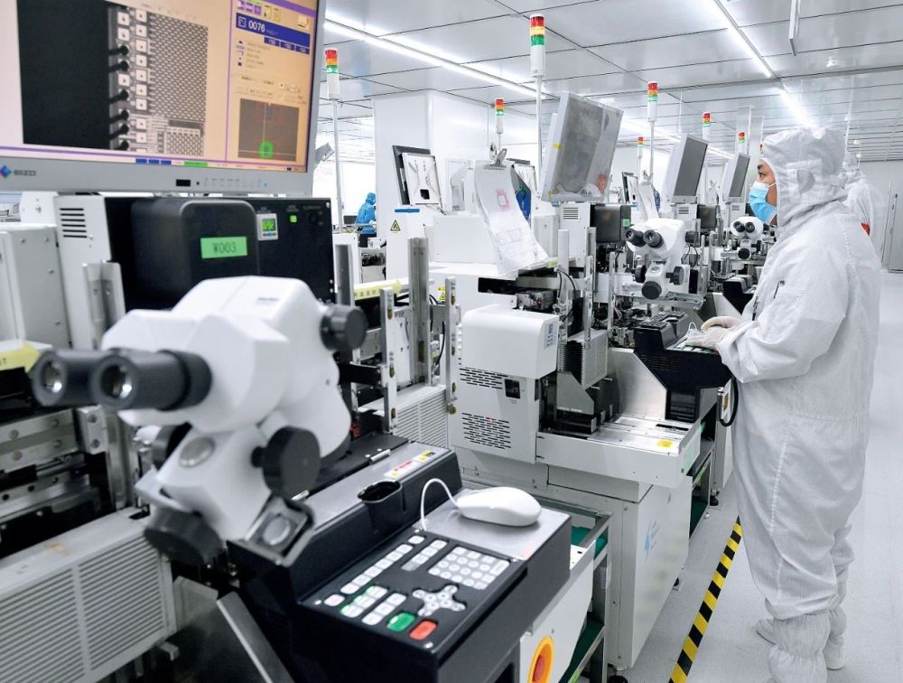 在位于新鄭市的鄭州電子信息產業(yè)園,SIP 芯片研制及高端封測生產基地內的生產車間(2022年9月20日攝)唐強攝