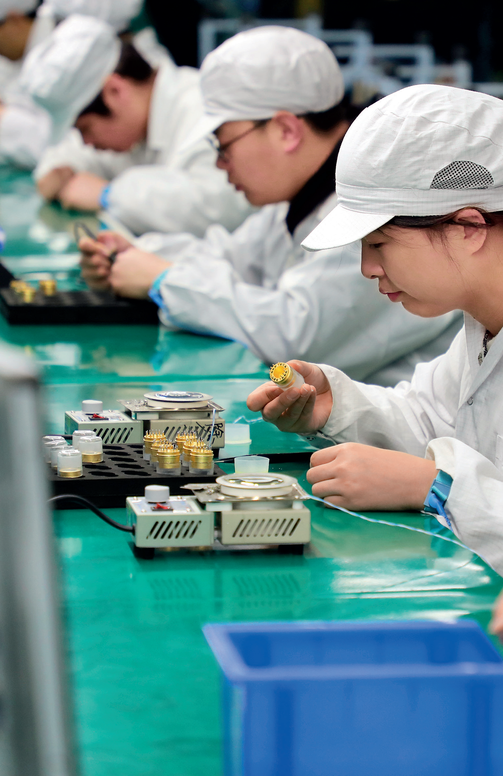 工人在位于鄭州的中國電子科技集團公司第二十七研究所生產線上作業(yè)(2023年2月20日攝) 李新華攝