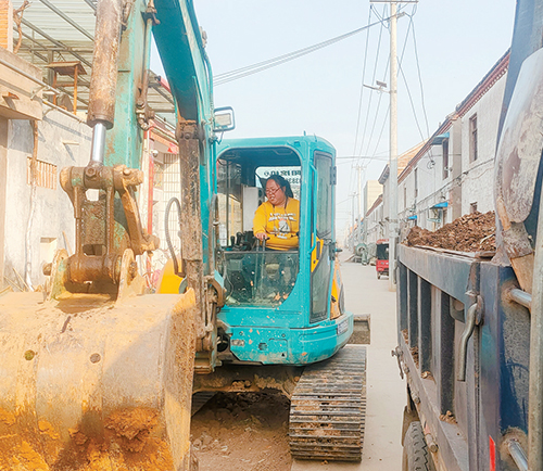 就這樣,經(jīng)過大半年的學習,她基本掌握了挖掘機的操作技術。在愛人的指導下,她有時能上車做一些“粗活”。