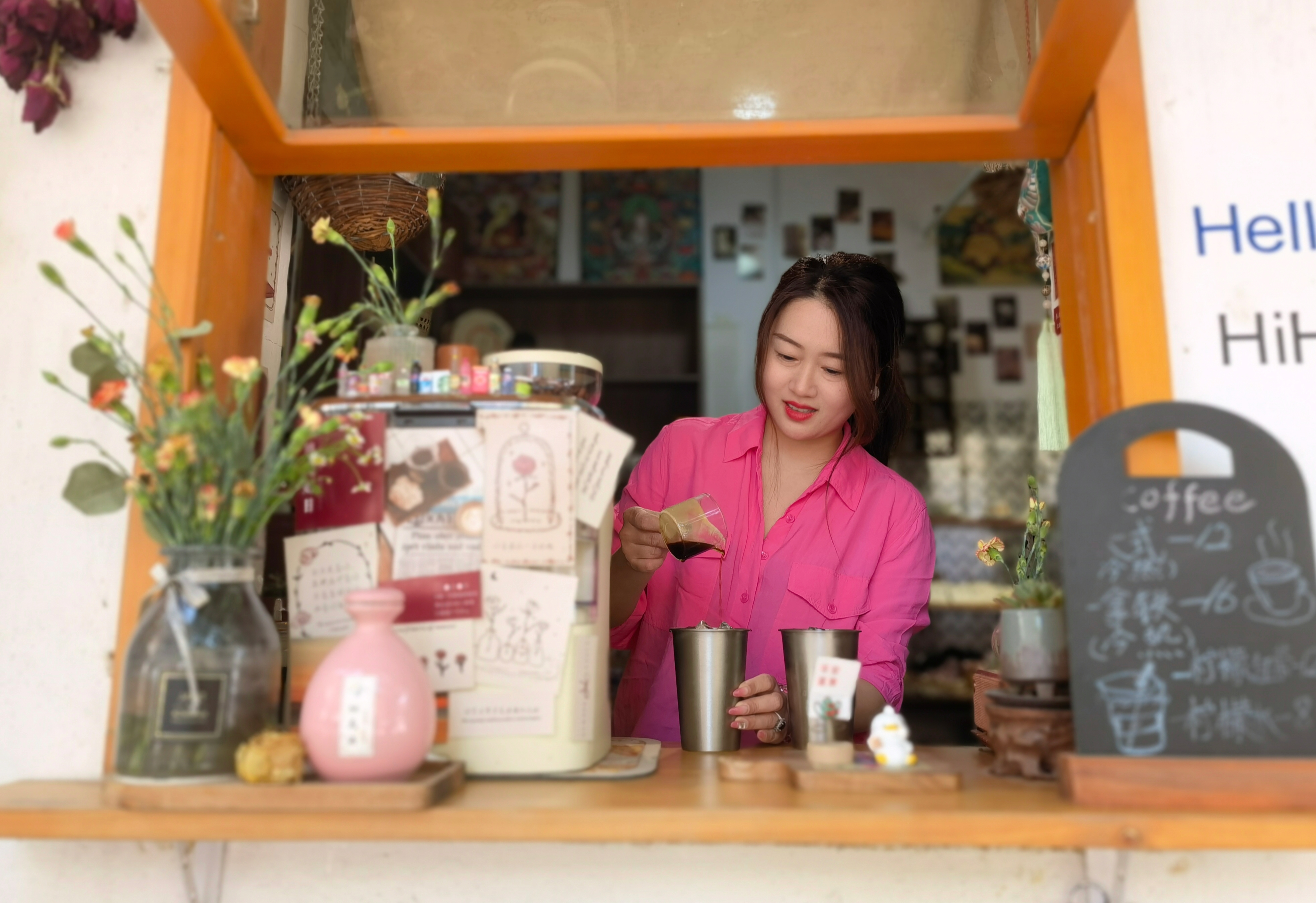 4月27日,解憂雜貨鋪的咖啡師在制作咖啡。