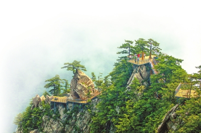 拾級(jí)登頂,規(guī)模宏大的金頂廟宇群落,奇特的花崗巖峰林奇觀,一萬多米長的環(huán)山水平懸空棧道叫人贊嘆不已……如今老君山已成為攝影愛好者的打卡地,更吸引眾多游客來此感受祖國的大美山川。
