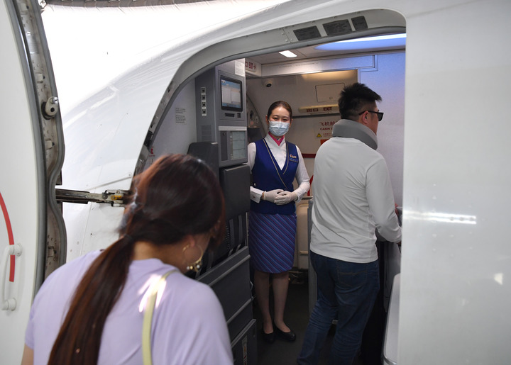 5月13日,旅客登上西安-烏魯木齊-阿什哈巴德首趟航班。當(dāng)日,西安至土庫曼斯坦首都阿什哈巴德的國際航線首飛。5月18日西安還將首開至塔吉克斯坦首都杜尚別的國際航線。新華社記者 邵瑞 攝