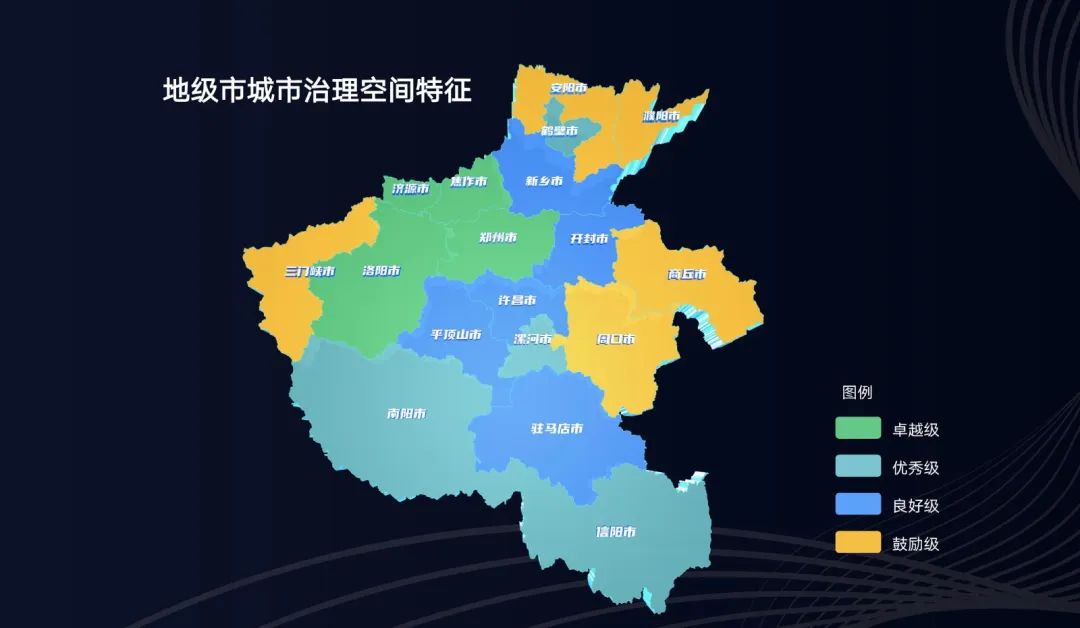 具體來說,在地級(jí)市城市空間治理上,形成了以鄭州市為核心,洛陽市、焦作市、濟(jì)源市為主體的西北部城市治理領(lǐng)先城市群, 河南城市發(fā)展的整體競爭力提升。全域城市治理水平呈現(xiàn)“鄭州引領(lǐng),梯次分布”的格局,河南省大中小城市協(xié)調(diào)發(fā)展的現(xiàn)代城市發(fā)展體系初見成效。