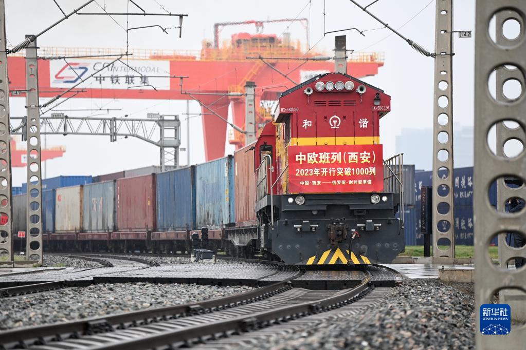 3月23日,X8489次中歐班列從西安國(guó)際港站駛出開往俄羅斯謝利亞季諾。新華社記者 李一博 攝