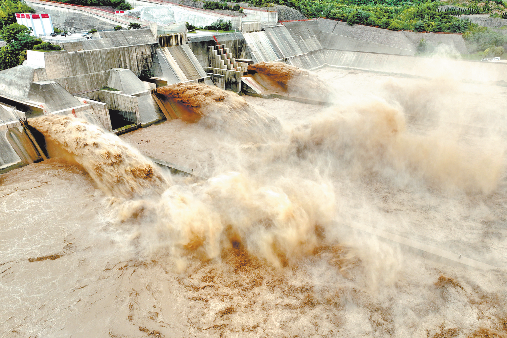 7月5日,黃河小浪底水利樞紐持續(xù)泄洪,裹挾著泥沙的混濁水流猶如“黃河巨龍”從排沙洞奔騰而出,吸引眾多游客前來(lái)觀賞。
