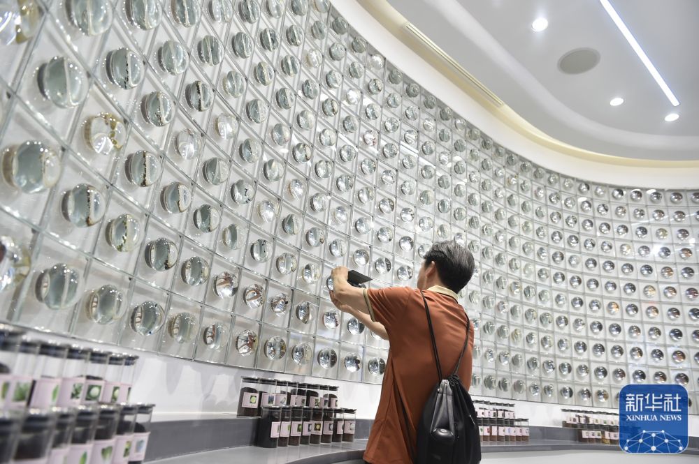↑7月8日,嘉賓在位于濟源市境內(nèi)的河南綠茵種業(yè)科技有限公司的展廳參觀拍照。