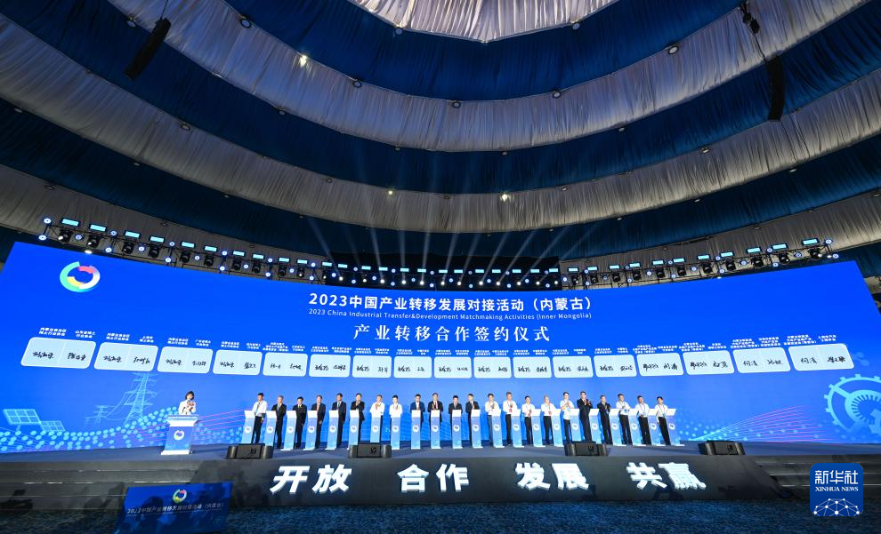 7月16日拍攝的2023中國產(chǎn)業(yè)轉(zhuǎn)移發(fā)展對(duì)接活動(dòng)(內(nèi)蒙古)開幕式暨簽約儀式。新華社記者 貝赫 攝