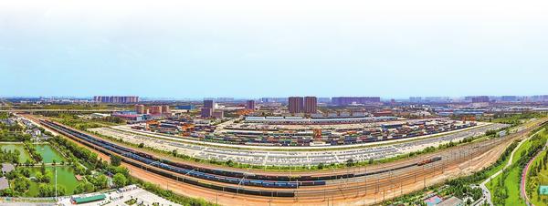 鄭州國際陸港,集裝箱林立,汽笛聲疾,貨運繁忙。