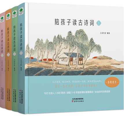 推薦理由:《陪孩子讀古詩(shī)詞》共四冊(cè),分為《春夏秋冬》《綠水青山》《別離深情》《赤子丹心》。輯一《春夏秋冬》以季節(jié)為主題,讓孩子在詩(shī)詞中體會(huì)春華秋實(shí)、酷暑嚴(yán)寒,領(lǐng)略四時(shí)風(fēng)光。輯二《綠水青山》,既有自然山水,又有鄉(xiāng)村名勝,和孩子一起穿越時(shí)空,走遍祖國(guó)大好河山。輯三《別離深情》涵蓋了古人表達(dá)友情、親情、愛(ài)情與鄉(xiāng)愁的經(jīng)典作品,讓孩子在文字里與古人來(lái)一場(chǎng)穿越時(shí)光靈魂之旅。輯四《赤子丹心》選錄了古人抒發(fā)自身理想抱負(fù)和愛(ài)國(guó)熱情的作品,讓孩子在閱讀的過(guò)程中感受古人的壯志豪情。全書(shū)囊括240多首詩(shī)詞,附有生動(dòng)詮釋和解讀,并深化拓展了古文化常識(shí),加上古典配圖,兼顧知識(shí)性與趣味性。家長(zhǎng)與孩子共讀,賞詩(shī)詞之美,品古典韻味。
