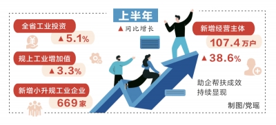 今年以來,全省“萬人助萬企”活動(dòng)向縱深推進(jìn),在持續(xù)加強(qiáng)企業(yè)紓困幫扶和推進(jìn)企業(yè)服務(wù)“八個(gè)深化”的基礎(chǔ)上,聚焦提升產(chǎn)業(yè)鏈現(xiàn)代化水平,攻難點(diǎn)、通堵點(diǎn)、除痛點(diǎn),助力全省經(jīng)濟(jì)穩(wěn)中提質(zhì)。記者7月31日獲悉,上半年,全省工業(yè)投資同比增長5.1%,規(guī)上工業(yè)增加值同比增長3.3%,新增小升規(guī)工業(yè)企業(yè)669家,新增經(jīng)營主體107.4萬戶、同比增長38.6%,助企幫扶成效持續(xù)顯現(xiàn)。