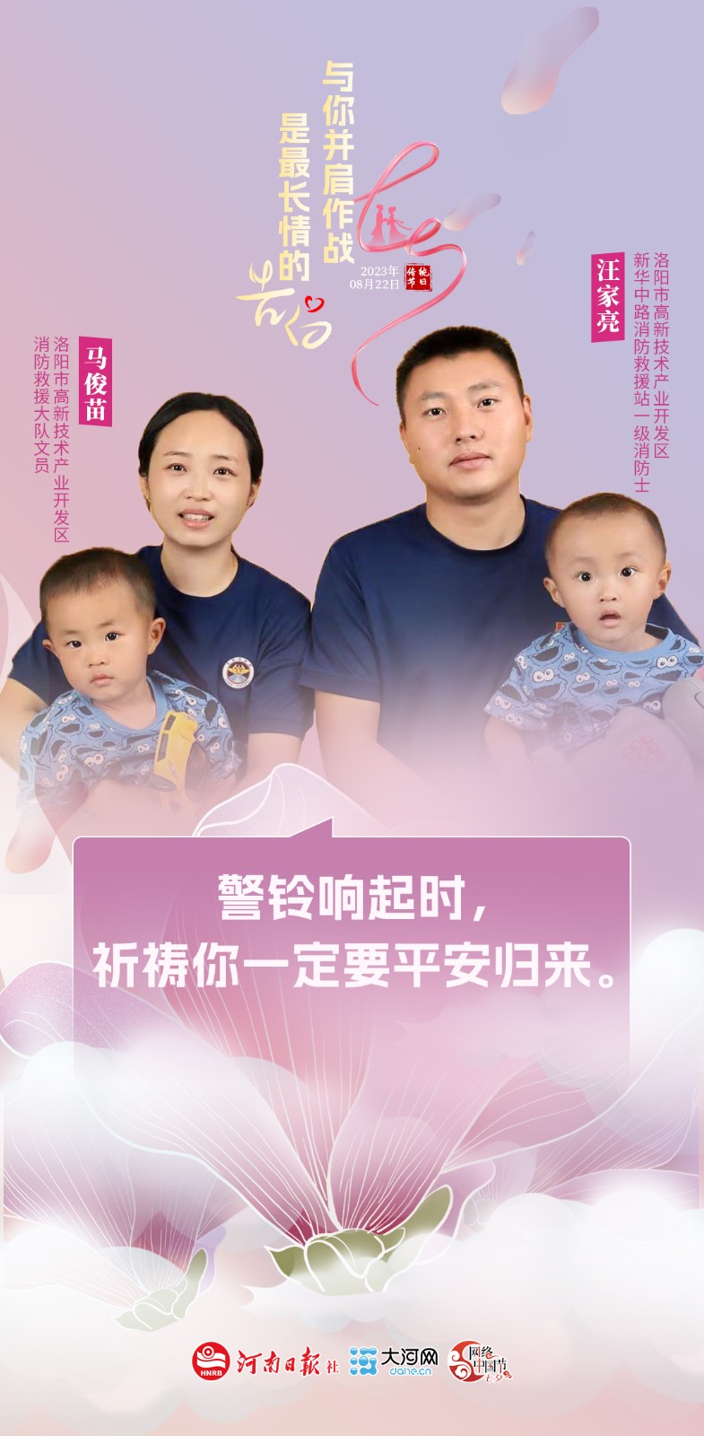 提起汪家亮夫妻,很多人都會羨慕他們擁有一個幸福美滿的家庭。從事消防事業(yè)已有16年個年頭的汪家亮,曾榮獲優(yōu)秀士兵一次,嘉獎三次,2022年還因工作表現(xiàn)突出榮立三等功一次。妻子馬俊苗現(xiàn)任洛陽高新技術產業(yè)開發(fā)區(qū)消防救援大隊文員。