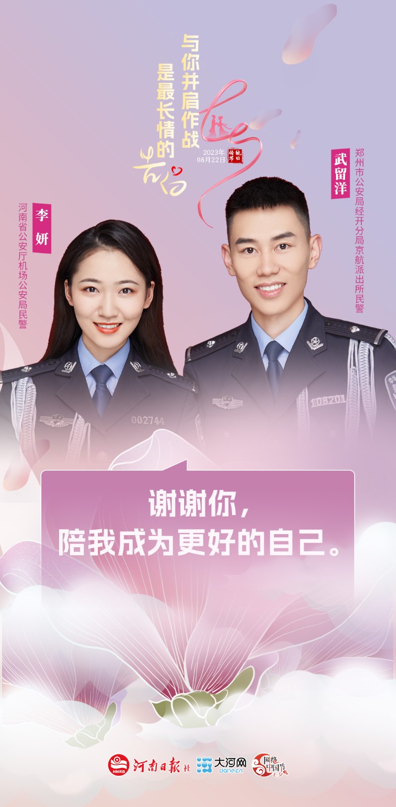 “共同的職業(yè),共同的信念,是她陪著我成長為更好的自己?!闭f起妻子李妍時,鄭州市公安局經開分局京航派出所民警武留洋滿眼笑意,“我們是大學同學,她現(xiàn)在在河南省公安廳機場公安局工作。今年,我們有了一個非??蓯鄣呐畠?。”