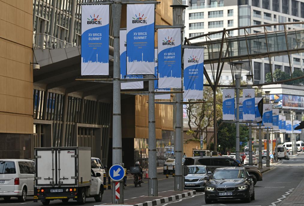 這是8月17日在南非約翰內(nèi)斯堡拍攝的金磚峰會條幅。金磚國家領(lǐng)導(dǎo)人第十五次會晤將于南非約翰內(nèi)斯堡舉行。新華社記者 陳誠 攝