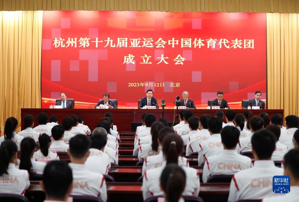 9月12日,杭州第19屆亞運(yùn)會(huì)中國(guó)體育代表團(tuán)成立大會(huì)在北京召開。新華社記者 賈浩成 攝