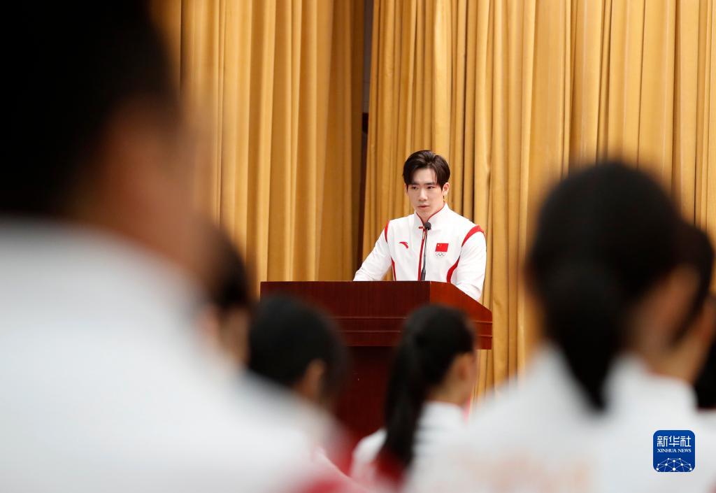 9月12日,運(yùn)動(dòng)員代表、中國(guó)體操運(yùn)動(dòng)員張博恒在成立大會(huì)上發(fā)言。新華社記者 賈浩成 攝