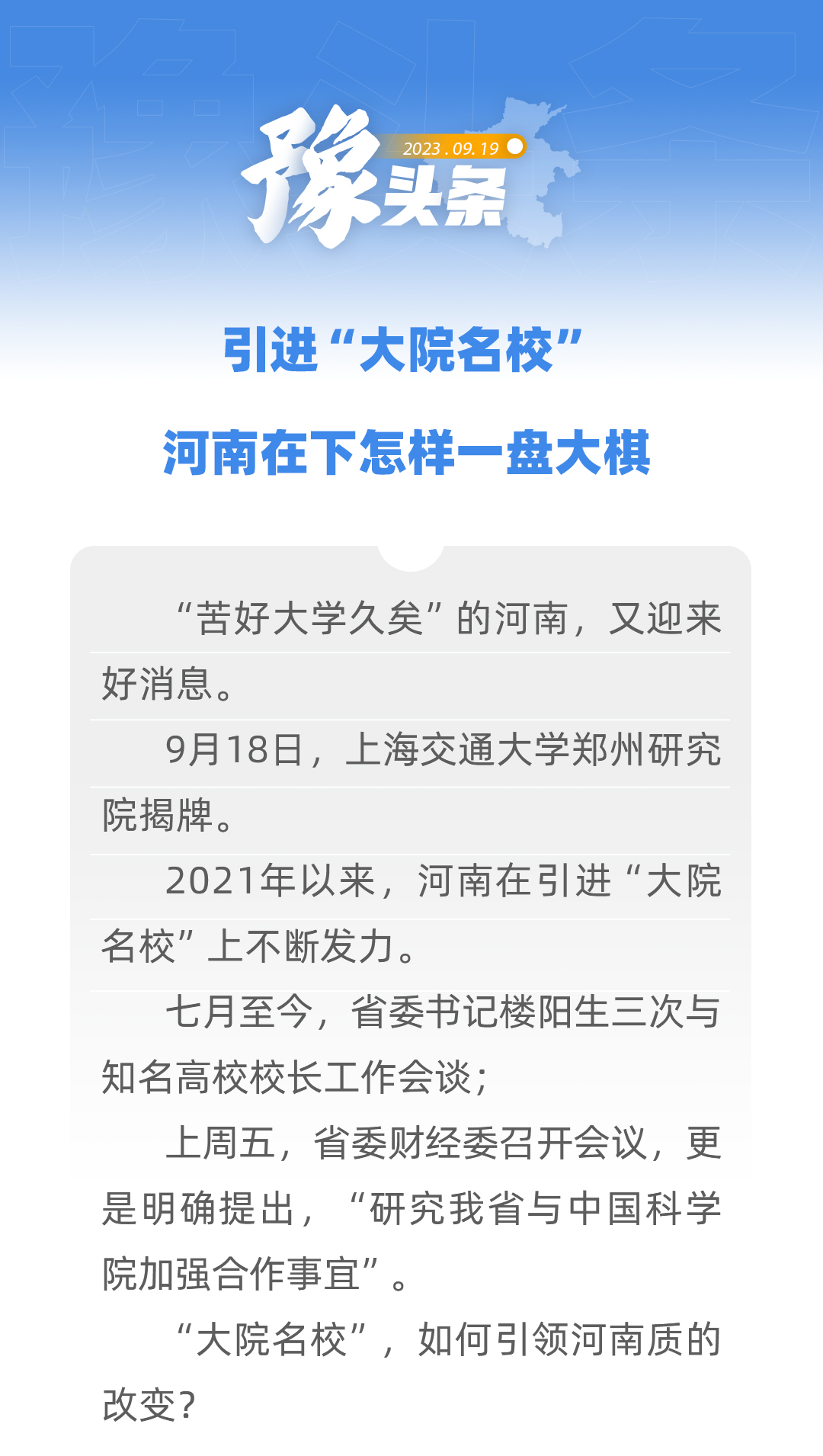 豫頭條 | 引進“大院名校”,河南在下怎樣一盤大棋
