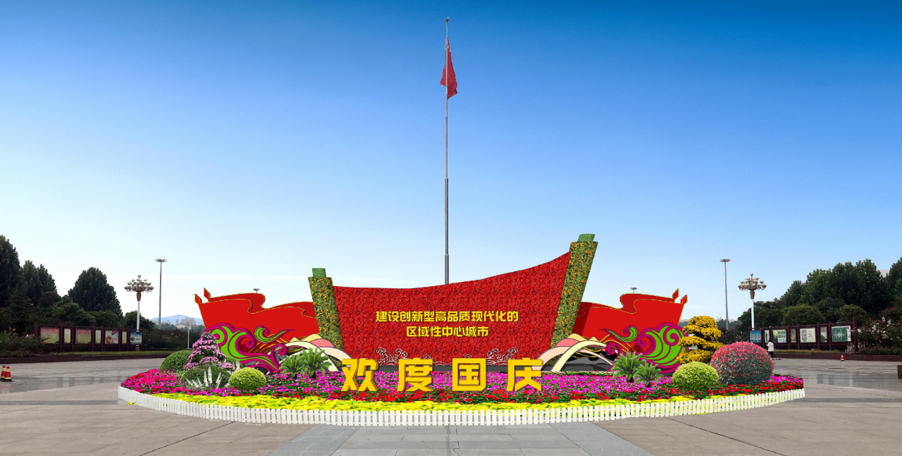 在世紀(jì)廣場東入口,記者看到工人們正在進行主體花架組裝、裝飾、擺花……經(jīng)過半天的緊張施工,一個立體造型與平面布置組合而成的“揚帆新時代 奮進新征程”主題花壇已見雛形,引人注目,烘托出熱鬧喜慶的節(jié)日氣氛。示范區(qū)住建局園林綠化中心園林工程師苗先軍介紹,這個花壇頂高6米,以卷軸為主景,卷軸左低右高,又像帆船,寓意揚帆起航;周圍配置2棵鐵樹,4棵三角梅,擺放矮牽牛等8個品種草花2.7萬余盆,整體花團錦簇,象征著在黨的領(lǐng)導(dǎo)下,偉大祖國繁榮富強的美好景象。