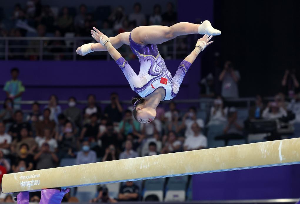 體操賽場也有中國小將橫空出世。17歲的左彤奪得女子個(gè)人全能冠軍。在隊(duì)友章瑾出現(xiàn)重大失誤,早早退出冠軍爭奪的情況下,左彤頂住壓力,以53.565分力壓日本選手岡村真奪冠。從2022年9月入選國家隊(duì)世錦賽集訓(xùn)大名單,到今年6月隨隊(duì)獲得亞錦賽團(tuán)體金牌,再到亞運(yùn)會(huì)收獲團(tuán)體和個(gè)人全能兩金,左彤正在打開一個(gè)充滿希望的未來。