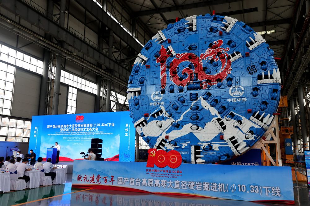 2021 年 6 月 17 日,首臺國產(chǎn)高原高寒大直徑硬巖掘進機在鄭州下線(圖片來源 :視覺中國)