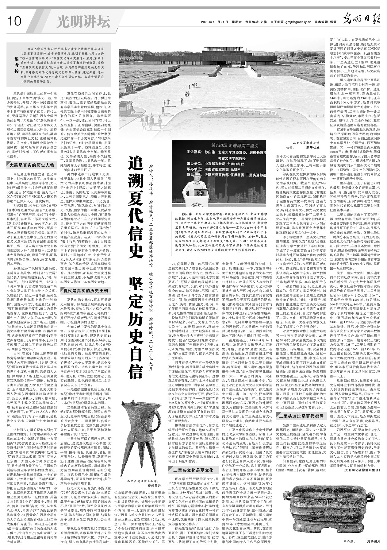 演講人:孫慶偉 演講地點:二里頭夏都遺址博物館 核心價值觀百場講壇 演講時間:2023年9月