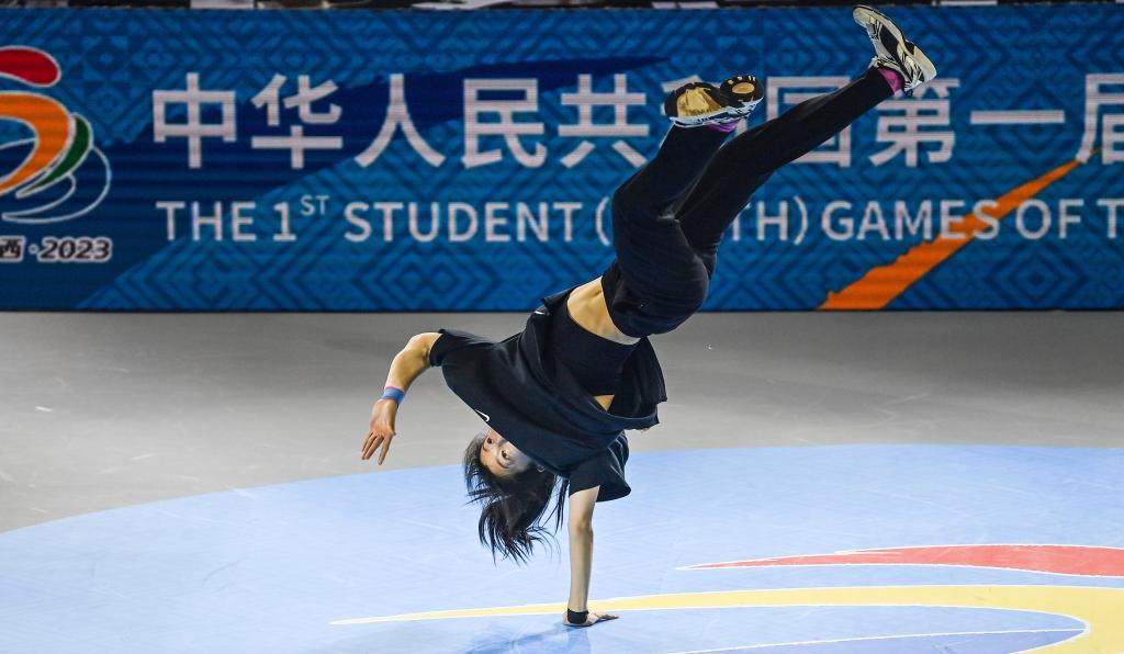 11月4日,南京市選手高紫嫣在第一屆全國學生(青年)運動會霹靂舞女子預賽中。新華社記者 張愛林 攝