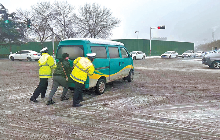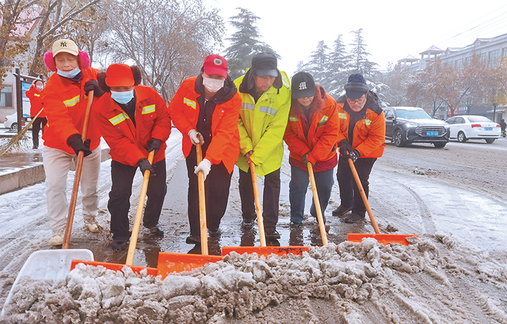 12月14日上午,我市出現(xiàn)降霰天氣,相關(guān)部門及時出動,清理城區(qū)主干道積雪,確保道路暢通。宋偉峰 于軍 攝