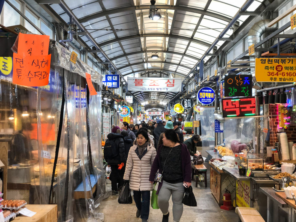 人們在韓國首爾的靈泉傳統(tǒng)市場購買年貨。新華社記者王婧嬙攝