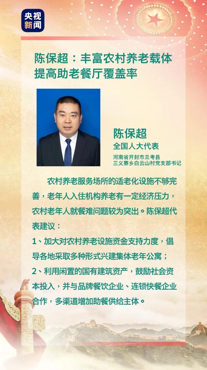 人大代表陳保超:豐富農(nóng)村養(yǎng)老載體,提高助老餐廳覆蓋率
