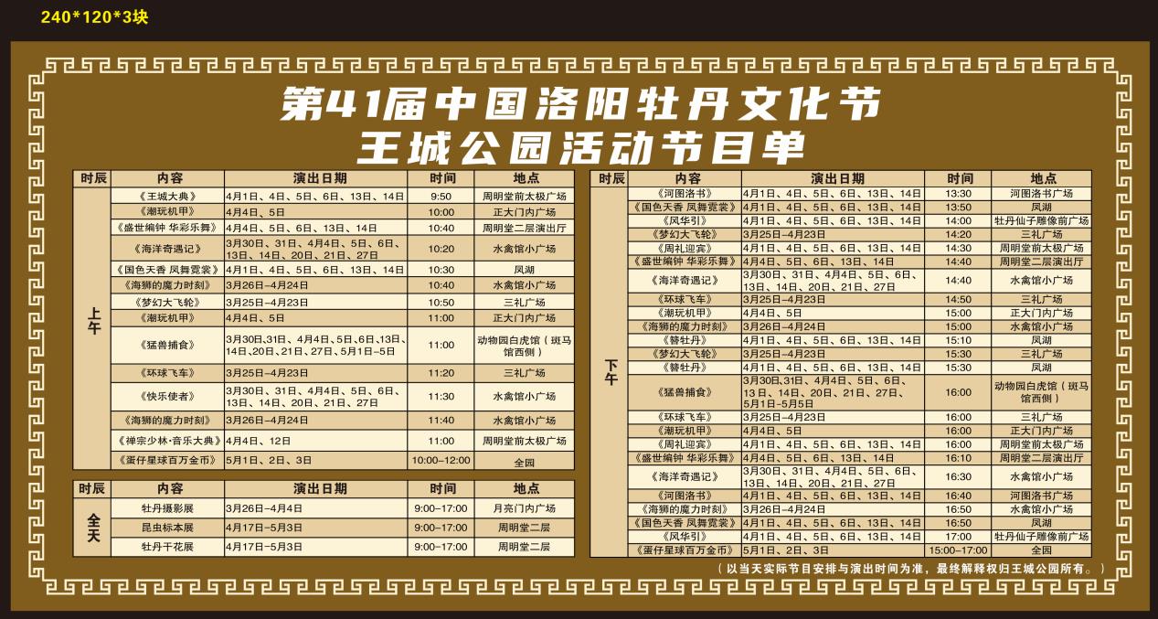 賞花期間,王城公園將舉辦“豫見王城,國潮盛典”系列活動,不僅有行進式歷史實景劇《王城大典》,還有“盛世編鐘 華夏樂舞”“鳳舞霓裳”“環(huán)球飛車”“夢幻大飛輪”“海獅的魔力時刻”“海洋奇遇記”“潮玩機甲”“蛋仔星球”等特色演出節(jié)目。