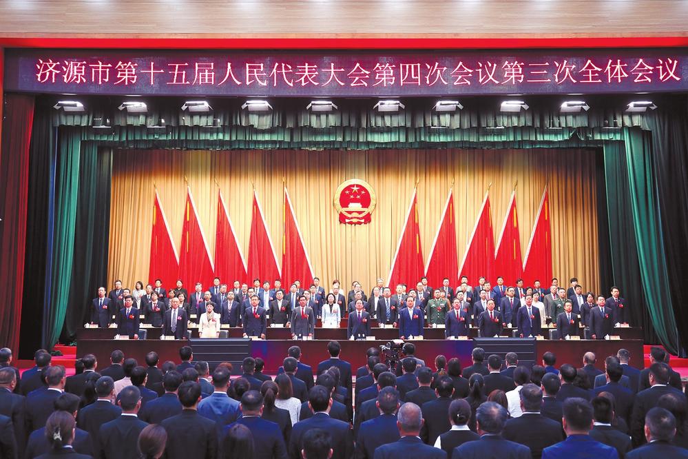 4月18日,濟源市第十五屆人民代表大會第四次會議圓滿完成各項議程后,在行政區(qū)會議廳勝利閉幕。 本報記者 李楠 攝