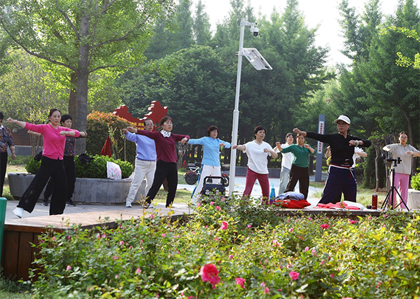 如今,每天早晚,在濟源的湨河河畔、世紀廣場以及街頭游園內,隨處可見健身運動的人群。大家或昂首挺胸健步行走;或跟著音樂節(jié)拍跳起快樂健身操;或在運動場上體驗揮灑汗水的酣暢淋漓;或揮舞球拍來一場激烈刺激的羽毛球比賽;或氣定神閑打一套行云流水的太極拳……