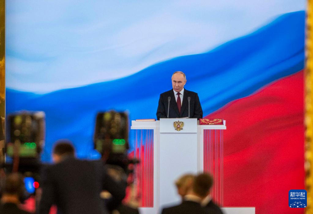 5月7日,俄羅斯總統(tǒng)普京在莫斯科克里姆林宮發(fā)表就職演說。新華社記者 曹陽 攝