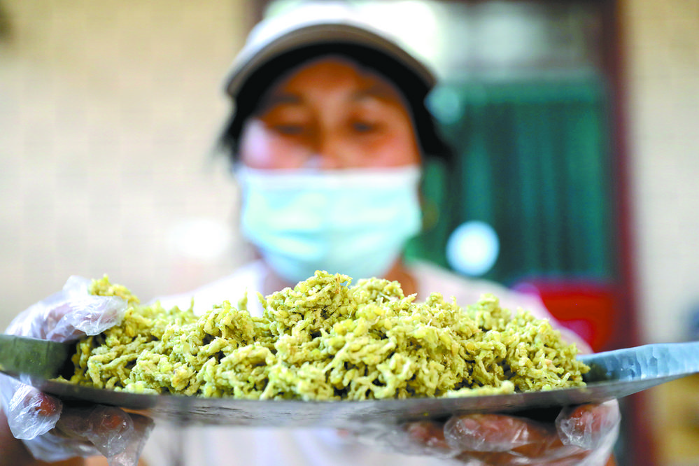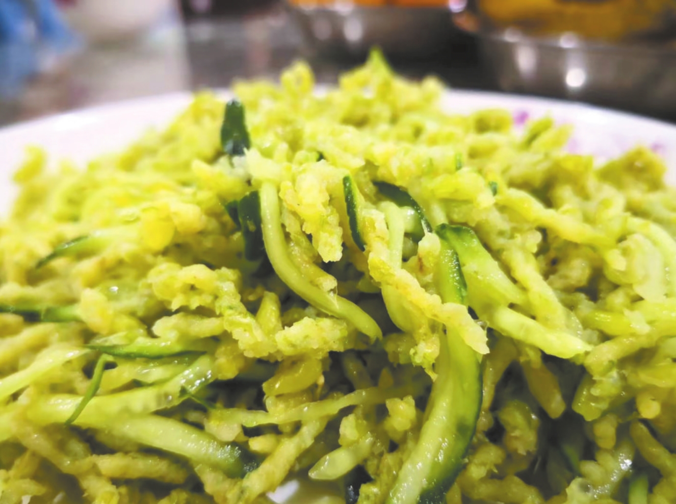 碾轉(zhuǎn)最常用的烹飪方式是和雞蛋一起炒,也可以蒸熟了涼拌,無論是炒著吃還是涼拌,都帶著一股濃濃的新麥香味,讓人回味無窮。