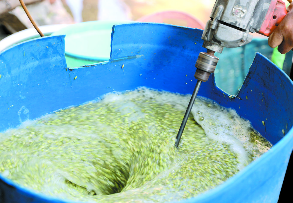 立夏過后,克井鎮(zhèn)大東許村的農(nóng)民便開始了碾轉(zhuǎn)的制作。