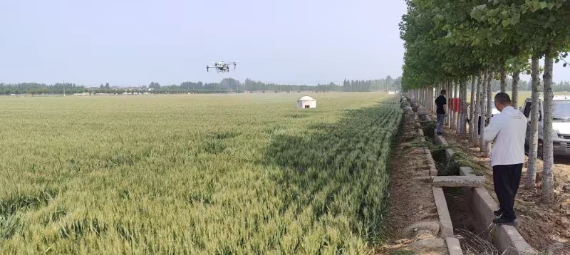 “飛防”作業(yè),是在小麥生長(zhǎng)期使用殺蟲(chóng)劑、殺菌劑、植物生長(zhǎng)調(diào)節(jié)劑、微肥等混合噴打,達(dá)到防病蟲(chóng)、防干熱風(fēng)、防早衰、增粒重,確保小麥增產(chǎn)增收的關(guān)鍵措施。