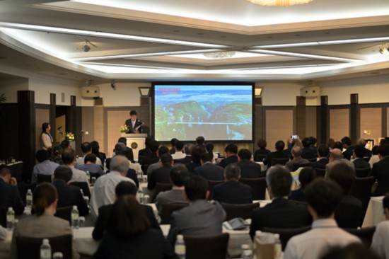 5月14日,張家界市委書記劉革安在推介會上致辭。(中國駐東京旅游辦事處供圖)