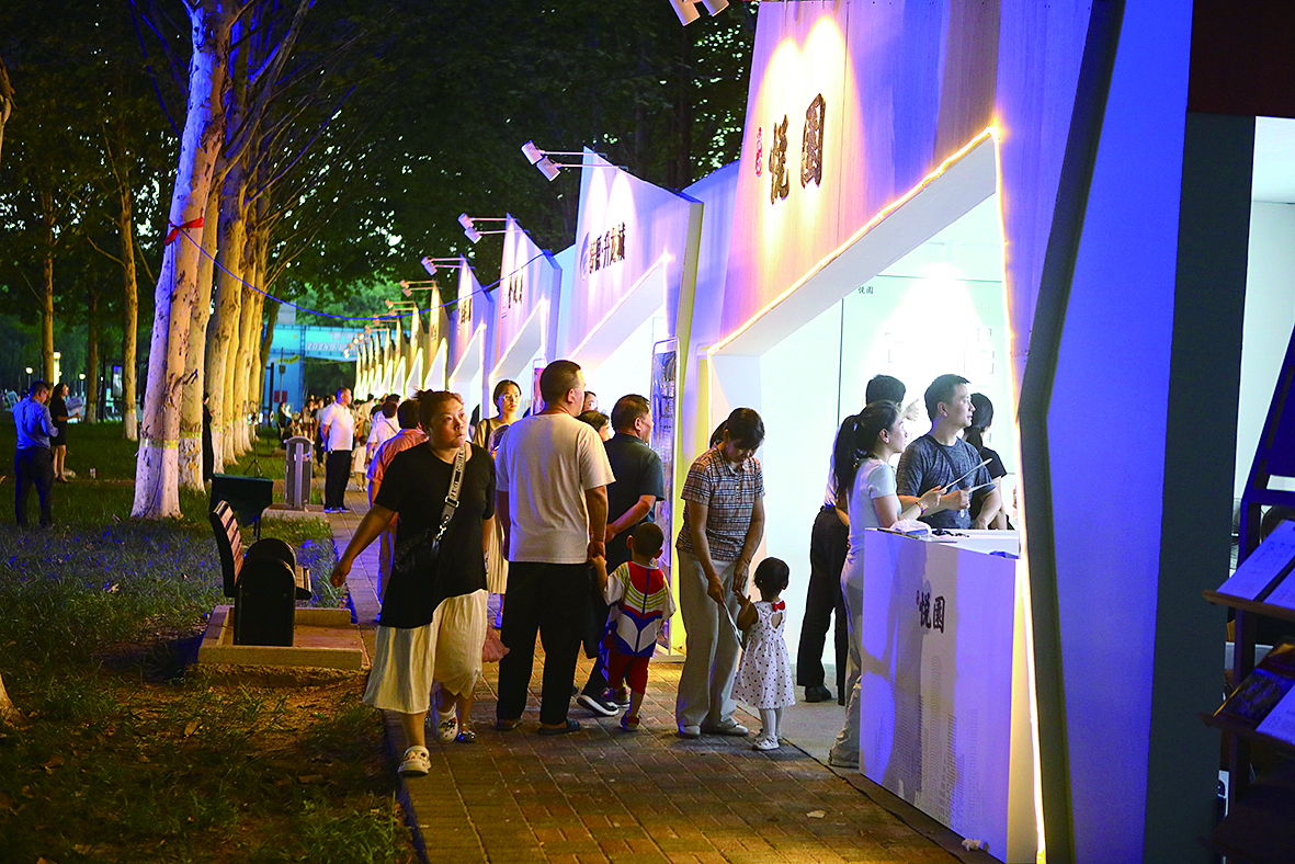 晚上8時(shí)許,記者在現(xiàn)場(chǎng)看到,夜幕降臨,前來納涼參展的市民絡(luò)繹不絕。整齊排列的林下展廳燈光閃爍,給這片梧桐林和房展會(huì)增添了不少浪漫色彩。