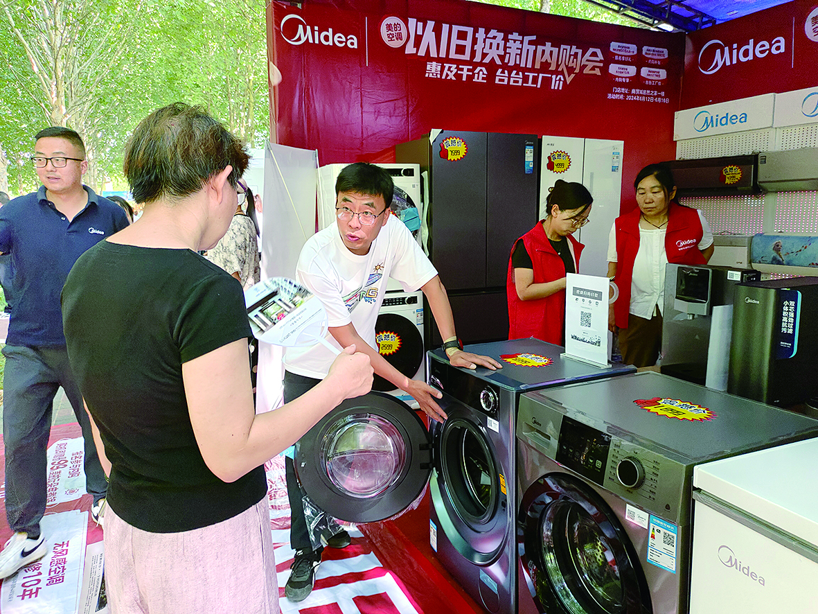 “不管家里的舊家電是不是美的品牌,都可以享受‘以舊換新’政策,贈送上門拆機(jī)的服務(wù),線上透明公開進(jìn)行評估折價(jià)。另外,單買新機(jī)也有大額補(bǔ)貼?!彼涡翊旱卣f。