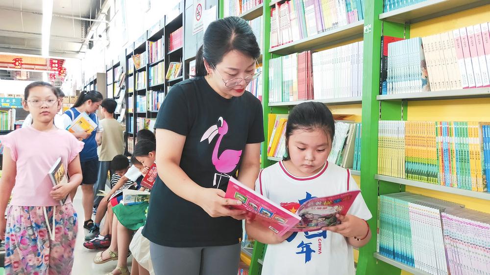 7月6日,在新華書店沁園路店,學(xué)生正在閱讀或挑選圖書。