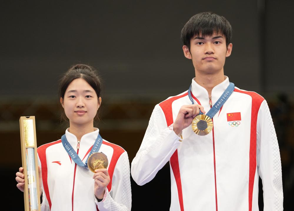 ??中國隊這套陣容以“00后”為主力。不滿20歲的黃雨婷和盛李豪頂住壓力,在10米氣步槍混合團體項目上為中國代表團摘下巴黎奧運會首金。40年前,許海峰在洛杉磯奧運會上為中國實現(xiàn)奧運金牌“零”的突破。此后,杜麗、易思玲和楊倩曾先后拿到奧運首金。本屆奧運會,這對“00后”組合將中國射擊的“首金傳統(tǒng)”發(fā)揚光大。