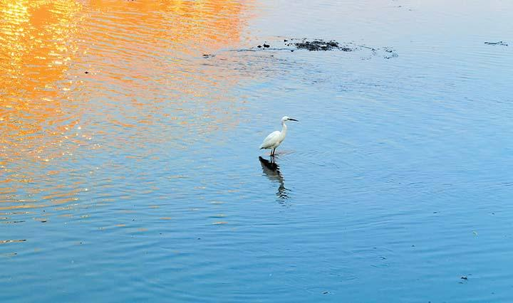 8月19日,一只白鷺在蟒河覓食。林勇 攝