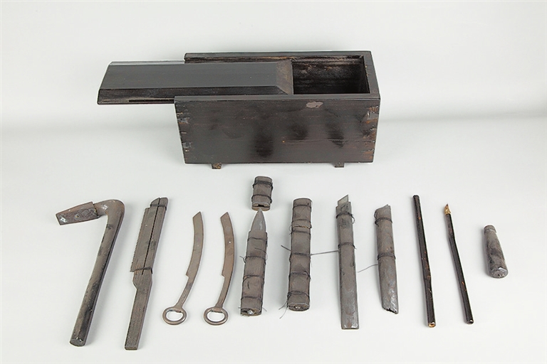 12件編制竹簡的工具,有銅鋸、錛、削、夾刻刀、刻刀、錐和毛筆。此毛筆是我國現(xiàn)知最早的毛筆,推翻了蒙恬造筆之說,將造筆的歷史提前了200多年,為研究中國毛筆的發(fā)明史提供了極為珍貴的實物資料。(文字整理/刁良梓)
