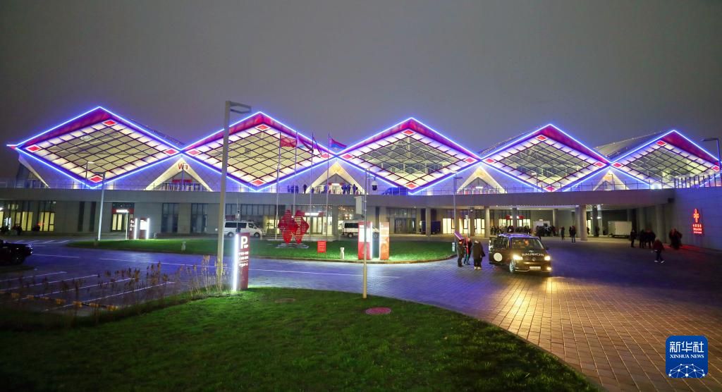 這是11月6日在白俄羅斯明斯克拍攝的中國援建的白俄羅斯國際標準游泳館外景。新華社發(fā)(任科夫攝)