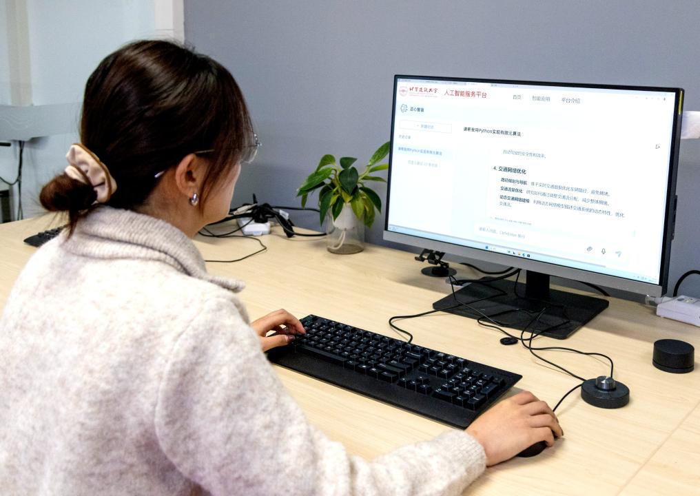 北京建筑大學(xué)學(xué)生體驗(yàn)該?;贒eepSeek打造的“匠心智語(yǔ)”人工智能平臺(tái)。新華社發(fā)