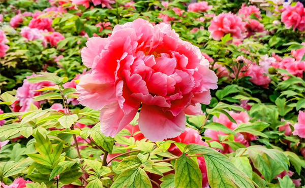 這里有黑海撒金、迎日紅、藍(lán)月亮、珊瑚臺(tái)、芳紀(jì)、八千代椿、八束獅子等絕色牡丹,還有墨冠玉翅、雞血石、寶蓮燈等稀有牡丹,盛花期牡丹花開成海,迎風(fēng)搖曳,美得讓人移不開眼!