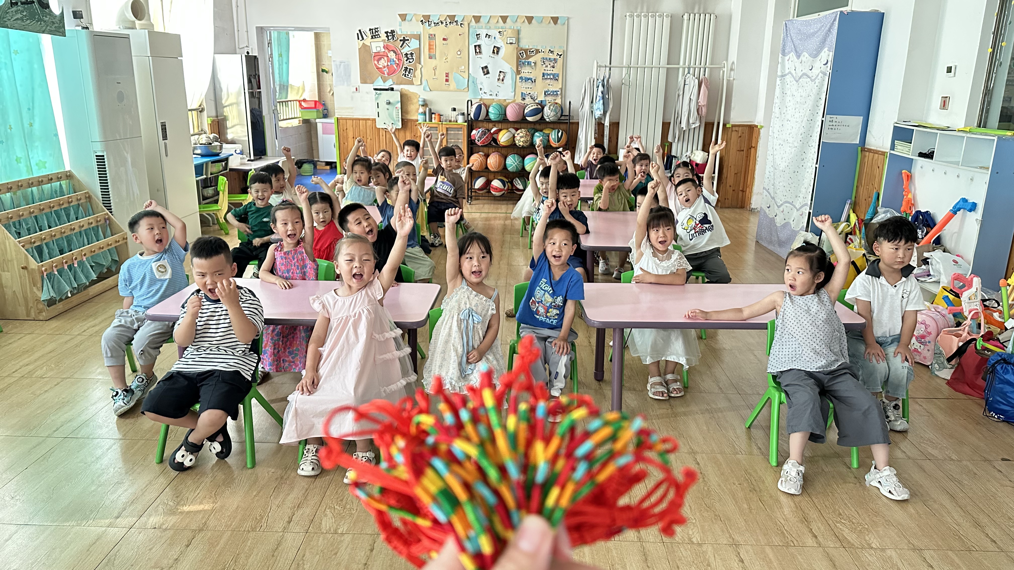 度濃情端午。廚房工作人員為孩子們準備了熱騰騰的粽子。孩子們一邊品嘗軟糯的粽子,一邊聆聽屈原的故事,感受傳統(tǒng)節(jié)日中的愛國情懷;中班孩子用畫筆設(shè)計花繩,大班孩子互相幫忙佩戴,小班的寶寶則由老師一一佩戴好,“驅(qū)邪祈福”、大膽想象和溫馨友愛的氛圍彌漫在班級里。
