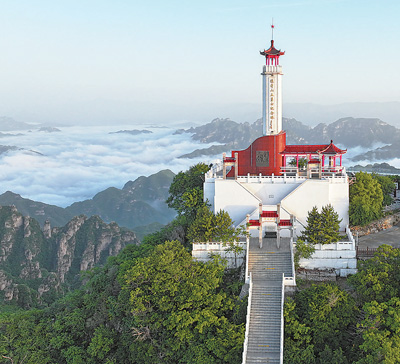 遠(yuǎn)眺狼牙山五勇士紀(jì)念塔。易縣狼牙山景區(qū)管委會供圖