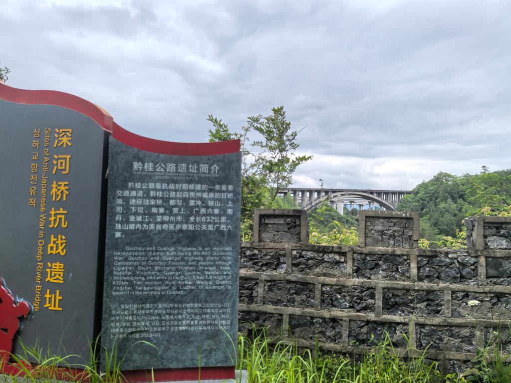 ??隨著深河橋的炸毀,日軍沒能再北上,此后節(jié)節(jié)敗退,至1945年8月15日日本宣布無條件投降,其間再無力發(fā)動大規(guī)模戰(zhàn)役。李天和告訴記者,獨山深河橋阻止了日軍北上的步伐,成為侵黔日軍不可逾越的鴻溝,也是侵華日軍走向失敗的歷史見證?!斑@就是‘北有盧溝橋,南有深河橋’。”