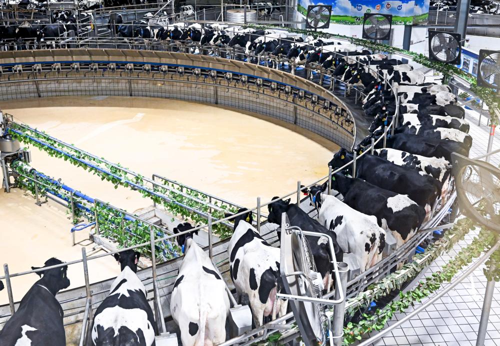這是2025年7月28日拍攝的呼和浩特市伊利敕勒川生態(tài)智慧牧場擠奶車間。新華社記者 李志鵬 攝