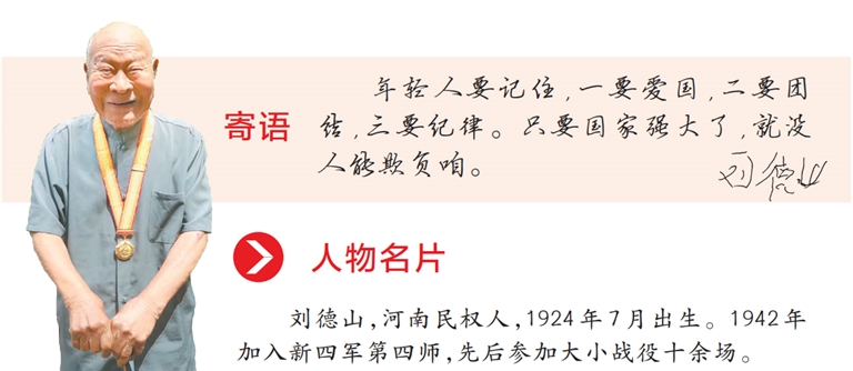 18歲的劉德山毅然參加新四軍,成為一名負(fù)責(zé)送信的通訊員,“那時候打仗缺人,咱就該上前線”。